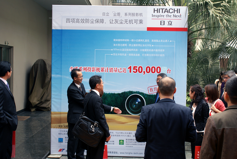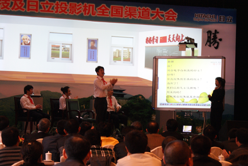會(huì)議由日立投影機(jī)大陸總代理鴻合科技主辦,全國(guó)三百多家代理商濟(jì)濟(jì)一堂、共商市場(chǎng)大計(jì),氣氛熱烈隆重。會(huì)上總結(jié)了2009年日立投影機(jī)的市場(chǎng)和銷(xiāo)售狀況,并對(duì)2010年的市場(chǎng)進(jìn)行了深入分析探討;日立公司為更好的服務(wù)于中國(guó)市場(chǎng)并繼續(xù)保持市場(chǎng)占有率第一的地位,在會(huì)上宣布所展示的十余款新機(jī)型將陸續(xù)推出投放市場(chǎng),并將繼續(xù)加大高端工程機(jī)型的研發(fā)力度,占領(lǐng)迅速崛起的高端投影市場(chǎng);鴻合科技也把即將推出的白瓷電子白板、投影機(jī)燈泡、幕布、“窗景”數(shù)字告示系統(tǒng)等新產(chǎn)品悉數(shù)亮相。