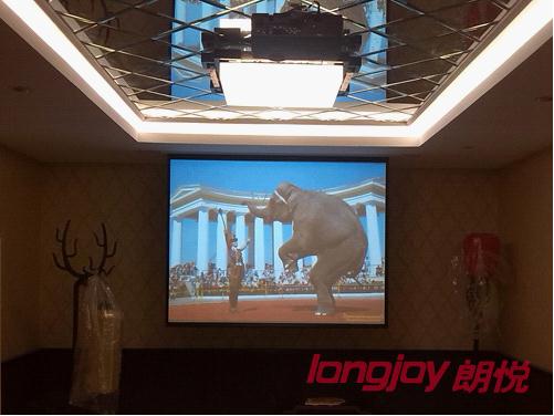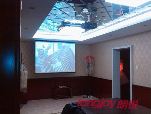 由于羅馬世家商務(wù)會館會議室內(nèi)部裝修極為高檔,在安裝多媒體設(shè)備中難免會涉及到吊頂?shù)恼膯栴},這就需要安裝人員在具備專業(yè)素質(zhì)的同時,也要注意設(shè)備與周邊環(huán)境的契合。朗悅科技接到該項目后,多次到該會館進行實際的測量與吊頂打眼角度的考察,最終做出一套完備的系統(tǒng)安裝實施方案。