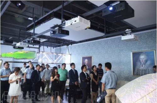 嘉賓觀看日立投影機8K拼融、Mapping、商業標牌、變換燈等創新方案及產品