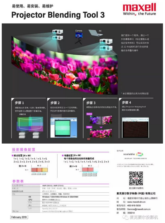 在巡展現(xiàn)場,最吸引眼球的是今年投影機新品MMP-D8010U/D7010U內(nèi)置的拼接融合功能,通過麥克賽爾開發(fā)的專用軟件及指定的數(shù)碼相機或攝像頭即可輕松實現(xiàn)自動拼接融合,同時還支持曲面校正、多臺疊加、快速且不降低像素!