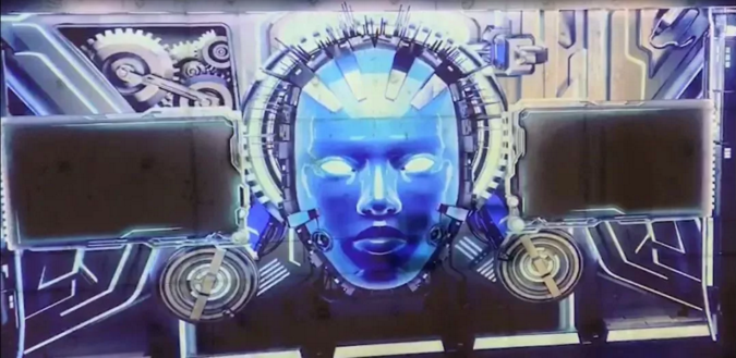 該方案由2臺麥克賽爾激光工程投影機向一面墻投射融合畫面,內容包括滿賦科幻感的臉部變化和抽象的人類跑步動畫,給人帶來了與眾不同的氛圍,極大地增強了視覺沖擊力,趣味性十足,且樹立了商場的全新形象。