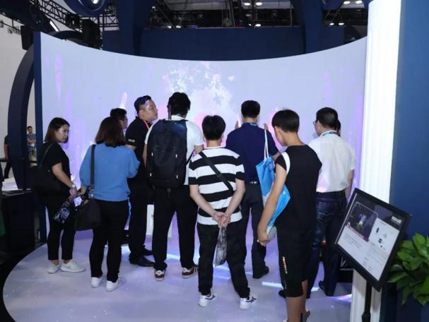此展項(xiàng)以投影結(jié)合交互娛樂體驗(yàn)來(lái)進(jìn)行科普等用途,觀眾通過輕觸感興趣的內(nèi)容可以獲取進(jìn)一步信息。同時(shí),這一展項(xiàng)也是麥克賽爾集團(tuán)的產(chǎn)品介紹,觀眾能夠通過該展項(xiàng)更有趣地了解麥克賽爾。此展項(xiàng)觀眾參與積極性很高,屏幕前經(jīng)常有多人一起和畫面互動(dòng)。