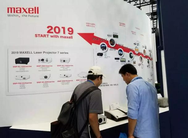 展會(huì)現(xiàn)場(chǎng),還以機(jī)身異形投影的方式展示了麥克賽爾主打產(chǎn)品,并展示了麥克賽爾投影機(jī)悠久的歷史,讓觀眾全方位了解麥克賽爾。