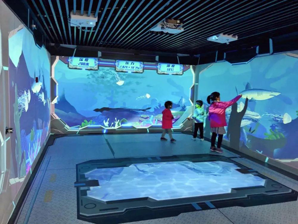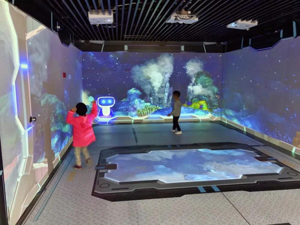 兩院院士風采館本次升級改造,利用多臺麥克賽爾短焦激光投影機MMP-K5010U機型打造沉浸式觀賞體驗方案。沉浸式投影是一種基于投影的虛擬現實系統,它由圍繞觀察者的三個投影面組成,三個投影面采用正投的方式,組成一個立方體結構,讓參觀者能夠達到身臨其境的參觀體驗。沉浸式投影從各個層面包圍著觀眾,能夠全面覆蓋觀眾的視角,沉浸感是普通投影所不能實現的,已經被越來越多的領域運用。