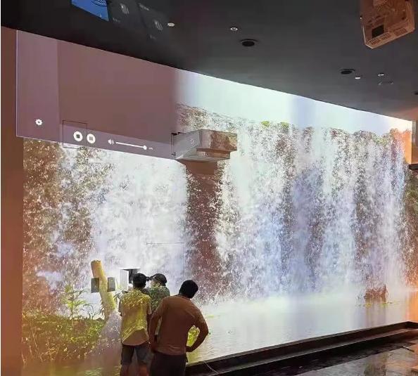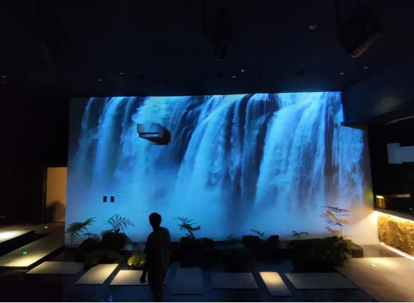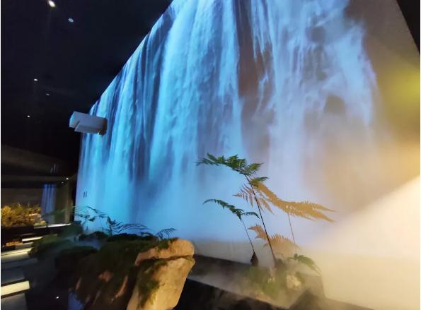 科技賦能智慧生活,麥克賽爾投影機憑借優質的產品性能和創新技術打造一個又一個讓人嘆為觀止的創新應用案例。不僅給顧客及參觀者帶來無與倫比的直觀感受,更能夠令人感受到自然之美、感悟人與自然的和諧共生之意境。巨型瀑布傾瀉而下,磅礴壯觀、潑灑飛流,令顧客及參觀者贊嘆不已。得以呈現如此壯觀的景象,離不開麥克賽爾短焦激光工程投影機MMP-K5010U的精彩演繹。