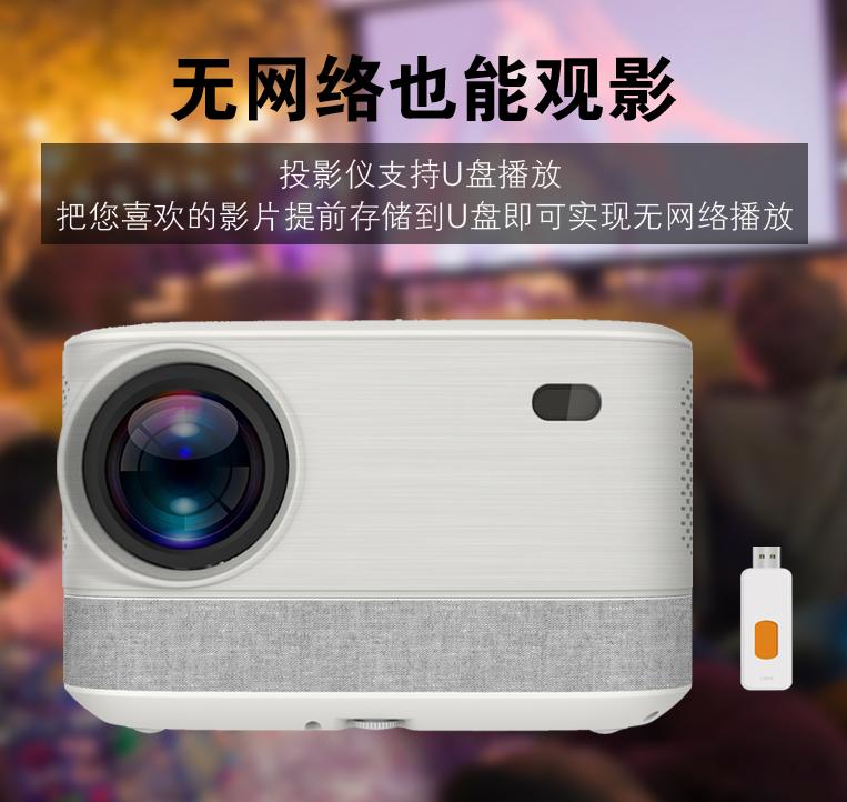 朗悅LV-T08投影儀,支持U盤播放,即使在沒有網絡的情況下,把喜歡的視頻文件提前存儲到U盤,即可實現無網絡播放,并且標配了兩個2*5W揚聲器,可足力呈現強勁震撼聲場,使您的視聽感受得到充分愉悅。